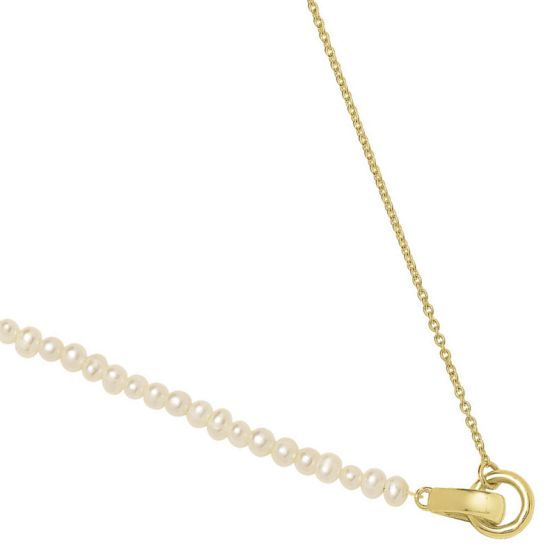 Ce collier Jourdan en argent 925 millièmes doré associe avec élégance la douceur des perles de culture à la finesse d'une chaine maille forçat. Une ligne de perles lumineuses, aux reflets nacrés, vient sublimer le bijou et créer un joli contraste avec l'éclat doré du métal. A la fois classique et raffiné, il apporte une touche de sophistication discrète, idéale pour accompagner aussi bien une tenue quotidienne qu'une occasion plus habillée.
