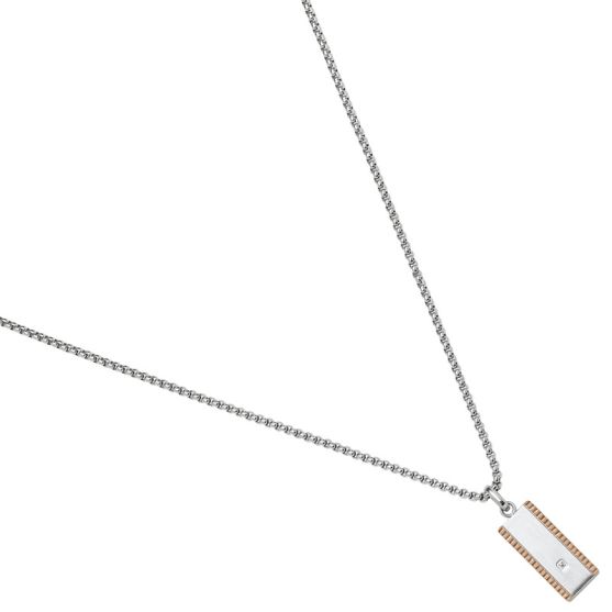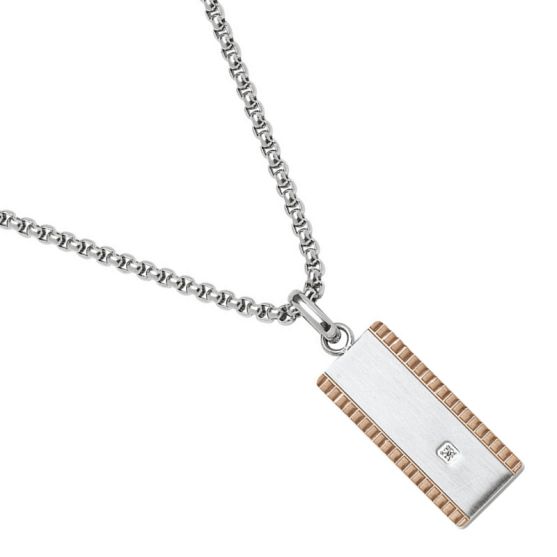 Collier acier Jourdan. Ce collier Jourdan en acier, se pare d'une plaque en acier orné de PVD brun et serti d'un diamant synthétique sur une chaine maille jaseron.