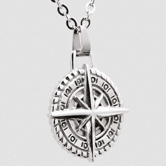En son centre, un pendentif représentant une rose des vents attire le regard. Finement travaillé, il dévoile des détails précis et équilibrés, évoquant subtilement l'esprit d'aventure et le goût de la liberté, comme une invitation à suivre sa propre direction.