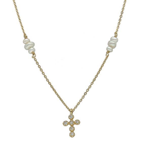 En son centre, un pendentif en forme de croix attire le regard. Il est entièrement serti d'oxydes de zirconium, disposés avec précision pour capter la lumière à chaque mouvement. Le motif, à la fois symbolique et raffiné, reste délicat grâce à ses proportions équilibrées.