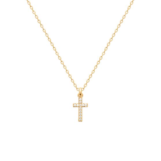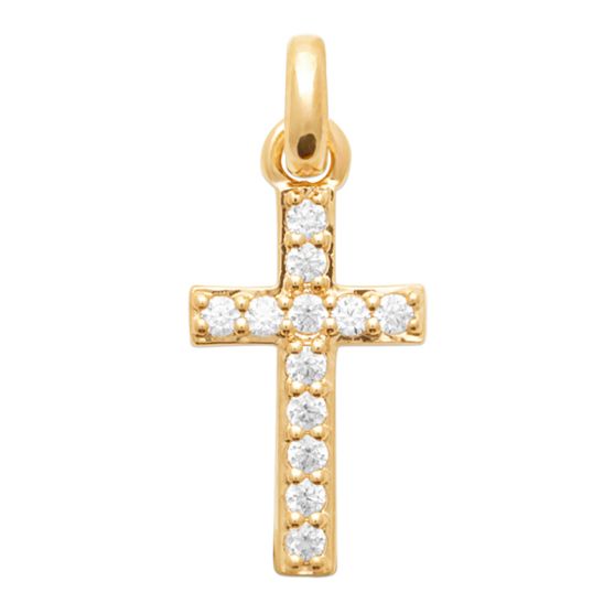 Cette croix en plaqué or serti d'oxydes de zirconium est à porter sur la chaine de votre choix.