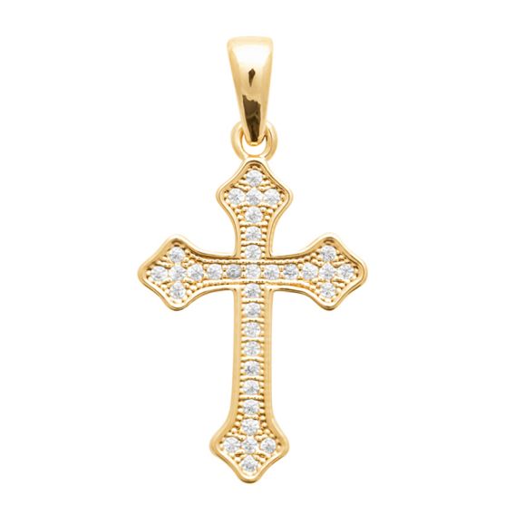 Cette croix en plaqué or serti d'oxydes de zirconium est à porter sur la chaine de votre choix.
