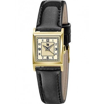 Montre Lip Churchill C18. Un classique intemporel de la marque Lip, un boîtier carré en acier doré au cadran agrémenté d'une trotteuse sur un élégant bracelet cuir noir. Fabriquée à Besançon - France.