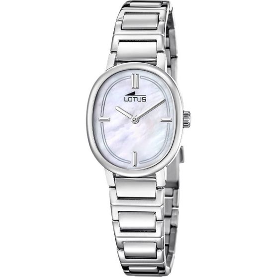Ce coffret Lotus présente une élégante montre femme acier au cadran nacré ainsi qu'un bracelet bijou en acier.