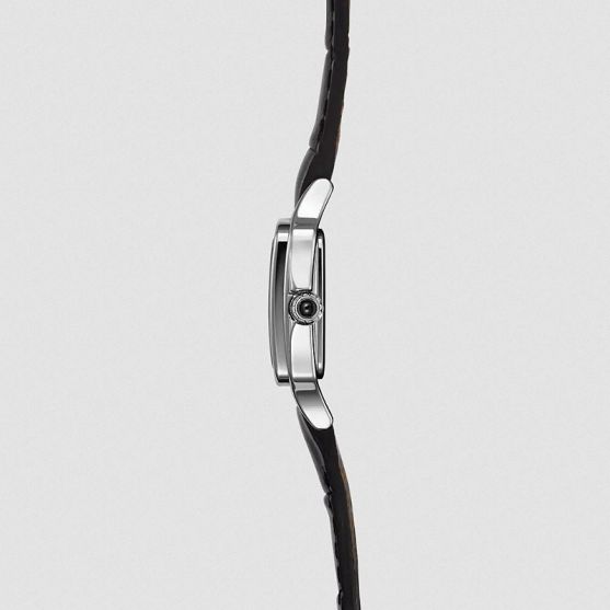 Cette montre raffinée séduit par son petit boitier carré en acier, aux lignes douces et féminines. Son cadran aux chiffres romains apporte une touche intemporelle, protégée par un verre saphir résistant aux rayures.