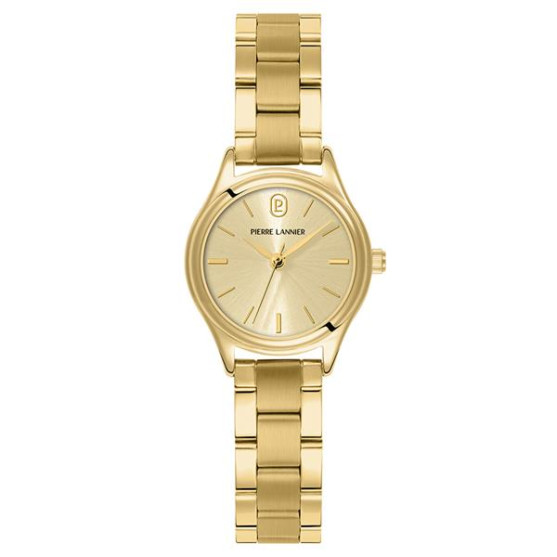 Montre femme Pierre Lannier. Cette montre Pierre Lannier collection Pya présente un boîtier doré sur un bracelet acier doré.