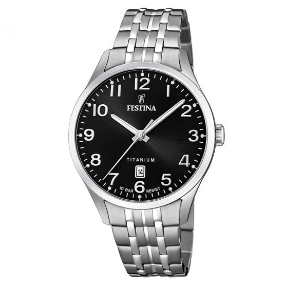 Montre homme Festina. Cette montre homme en titane hyper légère et agréable associe classicisme et sobriété.