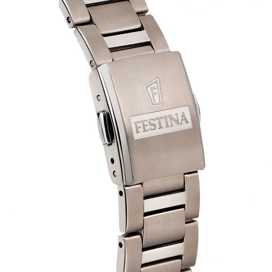 Cette montre Festina qui associe classicisme et sobriété présente un cadran argenté aux chiffres noirs sur un bracelet en titane hyper léger.