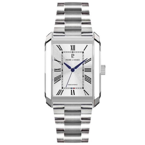 Cette montre homme Pierre Lannier séduit par son élégance intemporelle et sa silhouette structurée. Son boitier rectangulaire en acier affirme un style à la fois classique et contemporain, parfaitement équilibré par un bracelet en acier qui épouse délicatement le poignet.
