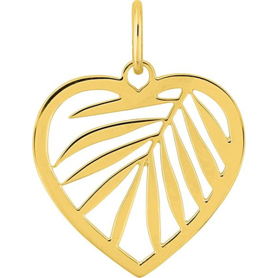 Ce pendentif en or 375 millièmes se distingue par son design en forme de coeur, à la fois moderne et aérien. Entièrement ajouré, il révèle un motif délicat inspiré d'une feuille stylisée, dont les nervures élégantes viennent structurer l'intérieur du coeur avec légèreté.